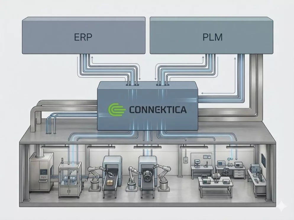 Connektica combines a secure execution platform with REST APIs and a python SDK, enabling automation of any equipment and integration with ERP, PLM, and other manufacturing tools.